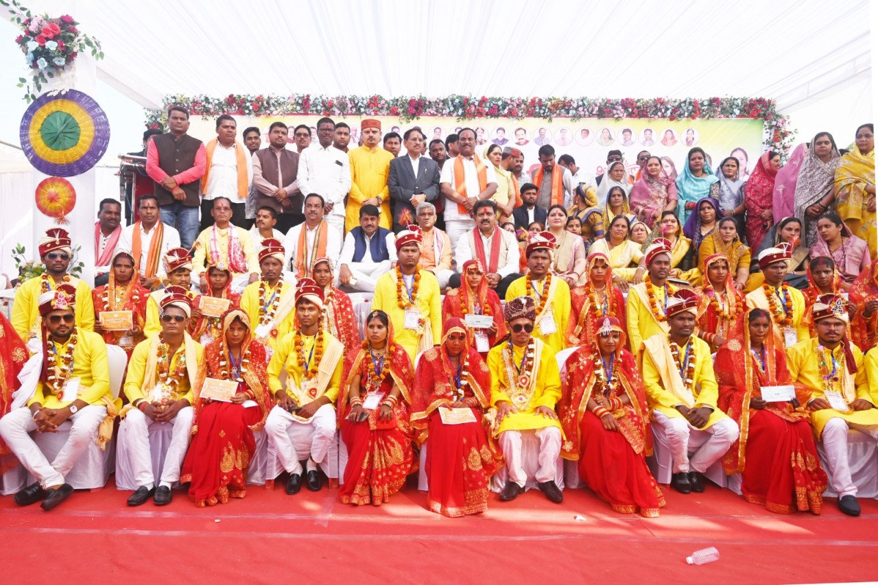 मुख्यमंत्री कन्या विवाह योजना से बेटियों को मिला सम्मान और सहारा– उप मुख्यमंत्री श्री विजय शर्मा मुख्यमंत्री श्री विष्णुदेव साय सामुहिक विवाह में वर्चुअल रूप से जुड़कर नव विवाहितों को दिया आशीर्वाद उपमुख्यमंत्री श्री विजय शर्मा 272 जोड़ों की सामुहिक विवाह में शामिल होकर आशीर्वाद प्रदान किया मुख्यमंत्री कन्या विवाह योजना के अंतर्गत सामाजिक रिती-रिवाजों और अभुतपूर्व उत्साह के साथ कबीरधाम जिले के 272 जोड़े एक साथ सात फेरे लेकर अटूट बंधन में बंध गए। इस पावन अवसर पर मुख्यमंत्री श्री विष्णुदेव साय वर्चुअल माध्यम से जुड़कर नवविवाहित जोड़ों को आशीर्वाद प्रदान किया। सरदार पटेल मैदान में आयोजित इस समारोह में उपमुख्यमंत्री श्री विजय शर्मा शामिल वधुओं के परिजन बनकर शामिल हुए। इस अवसर में उन्होंने बारात का स्वागत करने के साथ सभी को परघाते हुए समधी की तरह सभी का अभिवादन किया। वरों एवं उनके परिजनों का फूल माला के साथ स्वागत करते हुए सभी का गले लगाकर अभिनंदन किया। उन्होंने परिणय सूत्र में बंधकर नए जीवन की शुरुआत करने वाले सभी नवदंपतियों को बधाई एवं शुभकामनाएं दीं। कार्यक्रम में पंडित द्वारा वर-वधुओं को सात वचनों का संकल्प दिलाया गया, जिसके साथ ही विवाह की रस्में संपन्न हुईं। उपमुख्यमंत्री श्री शर्मा ने मंच पर पहुंचकर सभी नवदंपतियों को आशीर्वाद प्रदान किया और शासन की ओर से प्रत्येक जोड़े को 35-35 हजार रुपये की सहायता राशि का चेक और सामग्री भेंट किया। मुख्यमंत्री श्री विष्णुदेव साय ने भी आशीर्वाद देते हुए कहा कि आज का दिन छत्तीसगढ़ के लिए ऐतिहासिक है, क्योंकि मुख्यमंत्री कन्या विवाह योजना के माध्यम से अनेक जोड़े एक साथ विवाह के पवित्र बंधन में बंधकर अपने नए जीवन की शुरुआत कर रहे हैं। वर्ष 2005 में तत्कालीन मुख्यमंत्री डॉ. रमन सिंह ने आर्थिक रूप से कमजोर परिवारों की परेशानियों को समझते हुए मुख्यमंत्री कन्या विवाह योजना की शुरुआत की थी। पहले बेटियों की शादी के लिए परिवारों को कर्ज तक लेना पड़ता था, लेकिन इस योजना ने उनकी बड़ी चिंता दूर की है। इस पहल से गरीब और जरूरतमंद परिवारों को आर्थिक संबल मिला है और बेटियों का विवाह सम्मानपूर्वक संपन्न हो रहा है। उपमुख्यमंत्री श्री विजय शर्मा ने नवदाम्पत वर एवं वधु को आशीर्वाद प्रदान करते हुए उनके सुखमय जीवन की कामना की। उन्होंने कहा कि मुख्यमंत्री कन्या विवाह योजना से आज पूरे सम्मान के साथ कबीरधाम जिले के 272 बेटियों की विवाह पूरे रीति-रिवाज और सामाजिक परंपरा के साथ एक आदर्श विवाह के रूप में संपन्न कराया गया। आज हम सब इस सामुहिक विवाह के साक्षी बने और नवदाम्पत जोड़ों को एक साथ, एक स्थान और एक मंच पर उन्हें आशीर्वाद प्रदान करने का अवसर भी ह